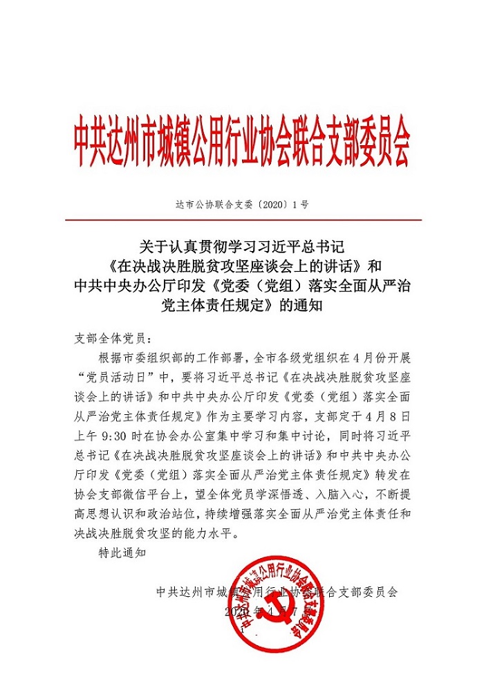 中共達州市城鎮(zhèn)公用行業(yè)協(xié)會聯(lián)合支部委