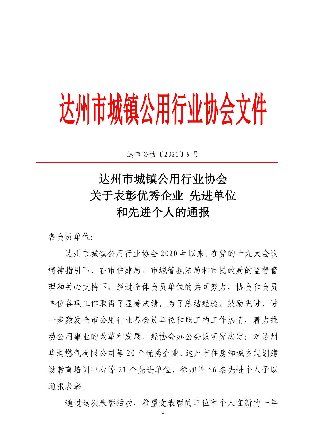 達(dá)州市城鎮(zhèn)公用行業(yè)協(xié)會(huì)