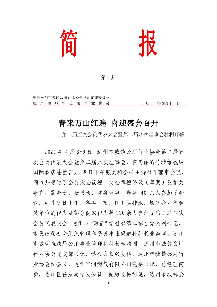 達(dá)州市城鎮(zhèn)公用行業(yè)協(xié)會(huì)2021年第五期簡(jiǎn)報(bào)