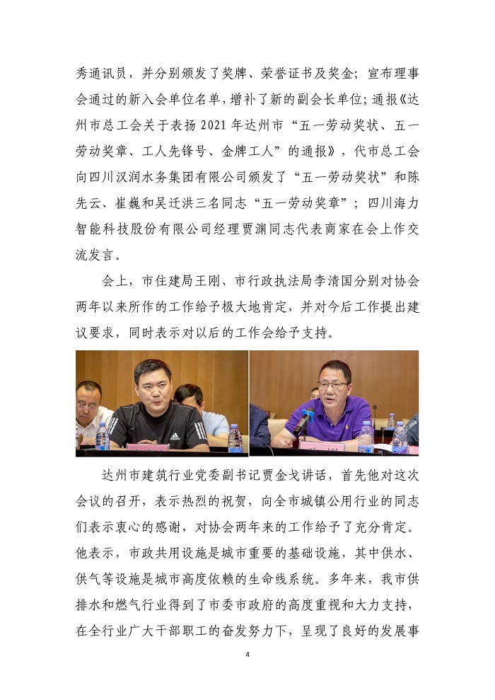 達州市城鎮(zhèn)公用行業(yè)協(xié)會2023年第四期簡報