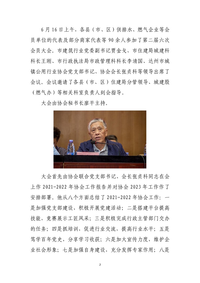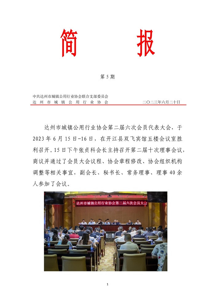達州市城鎮(zhèn)公用行業(yè)協(xié)會2023年第五期簡報