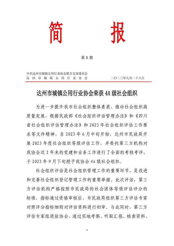 達(dá)州市城鎮(zhèn)公用行業(yè)協(xié)會2025年第八期簡