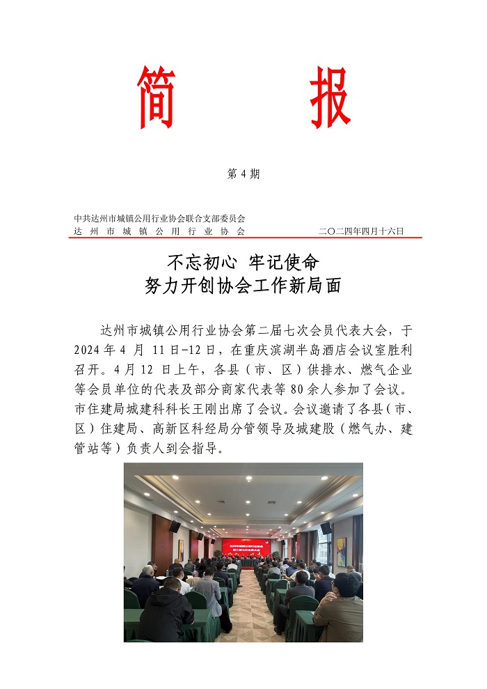 達(dá)州市城鎮(zhèn)公用行業(yè)協(xié)會(huì)2024年第四期簡報(bào)