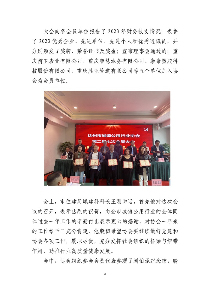 達(dá)州市城鎮(zhèn)公用行業(yè)協(xié)會(huì)2024年第三期簡報(bào)
