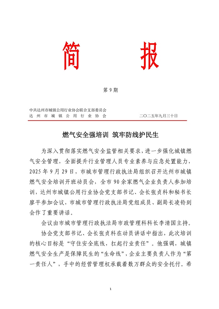 達(dá)州市城鎮(zhèn)公用行業(yè)協(xié)會(huì)2025年第九期簡報(bào)