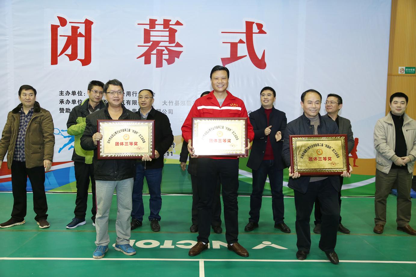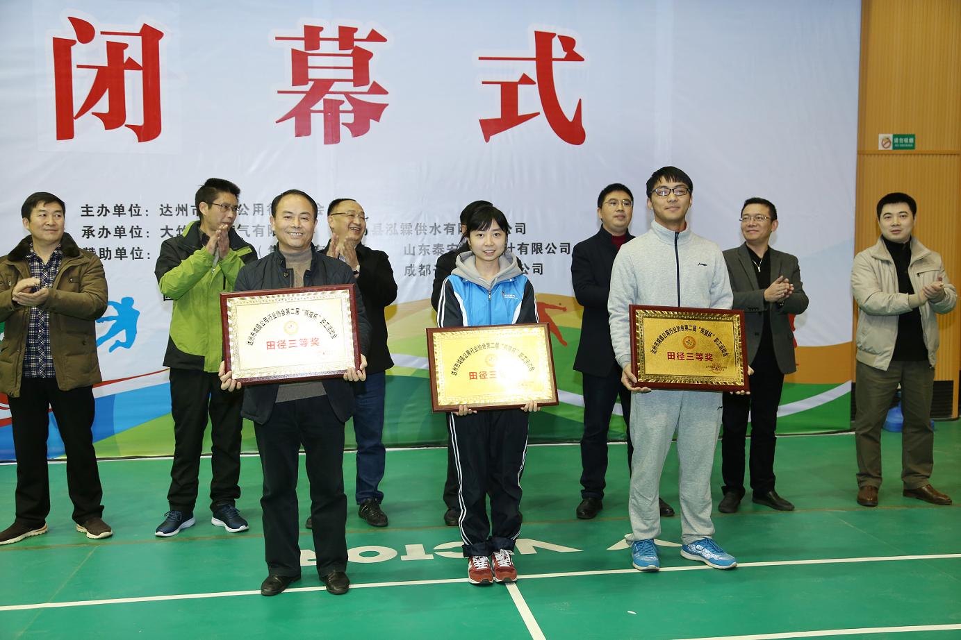 本次運動會本著“友誼第一,比賽第二”的原則,全體運動員賽出了風格,賽出了水平,充分展現(xiàn)了公用行業(yè)系統(tǒng)職工的精神風貌和風采。經(jīng)過兩天的激烈競爭,大竹縣泓霖供水有限責任公司榮獲本次運動會團體第一名;達州華潤燃氣有限公司、中石油達州天然氣有限責任公司榮獲本次運動會團體第二名;大竹縣民營燃氣企業(yè)聯(lián)隊、達州市市政工程管理處、開江華潤燃氣有限公司榮獲本次運動會團體第三名;宣漢縣自來水公司等5個單位獲得優(yōu)秀組織獎;大竹民營燃氣企業(yè)聯(lián)隊等6個單位分別榮獲田徑4*100米接力一、二、三等獎;大竹縣泓霖供水有限責任公司等6個單位分別榮獲拔河比賽一、二、三等獎;王梅等30名個人分別獲得羽毛球、乒乓球、象棋比賽一、二、三等獎。
