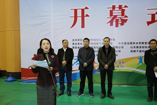 達州市住建局副局長劉杰同志、大竹縣副縣長王英同志到會指導并作了重要講話,達州市民政局民間組織管理科科長茍旭陽同志致賀詞,大竹縣泓霖供水有限責任公司總經(jīng)理、組委會副主任鄧小林同志代表東道主致歡迎詞,達州市城鎮(zhèn)公用行業(yè)協(xié)會會長、組委會主任張貞科同志在運動會開幕式上做主旨講話,達州市市政工程管理處副主任、協(xié)會副秘書長陳先祥同志在閉幕會上致閉幕詞。運動會由協(xié)會秘書長、組委會副主任李成會同志主持。