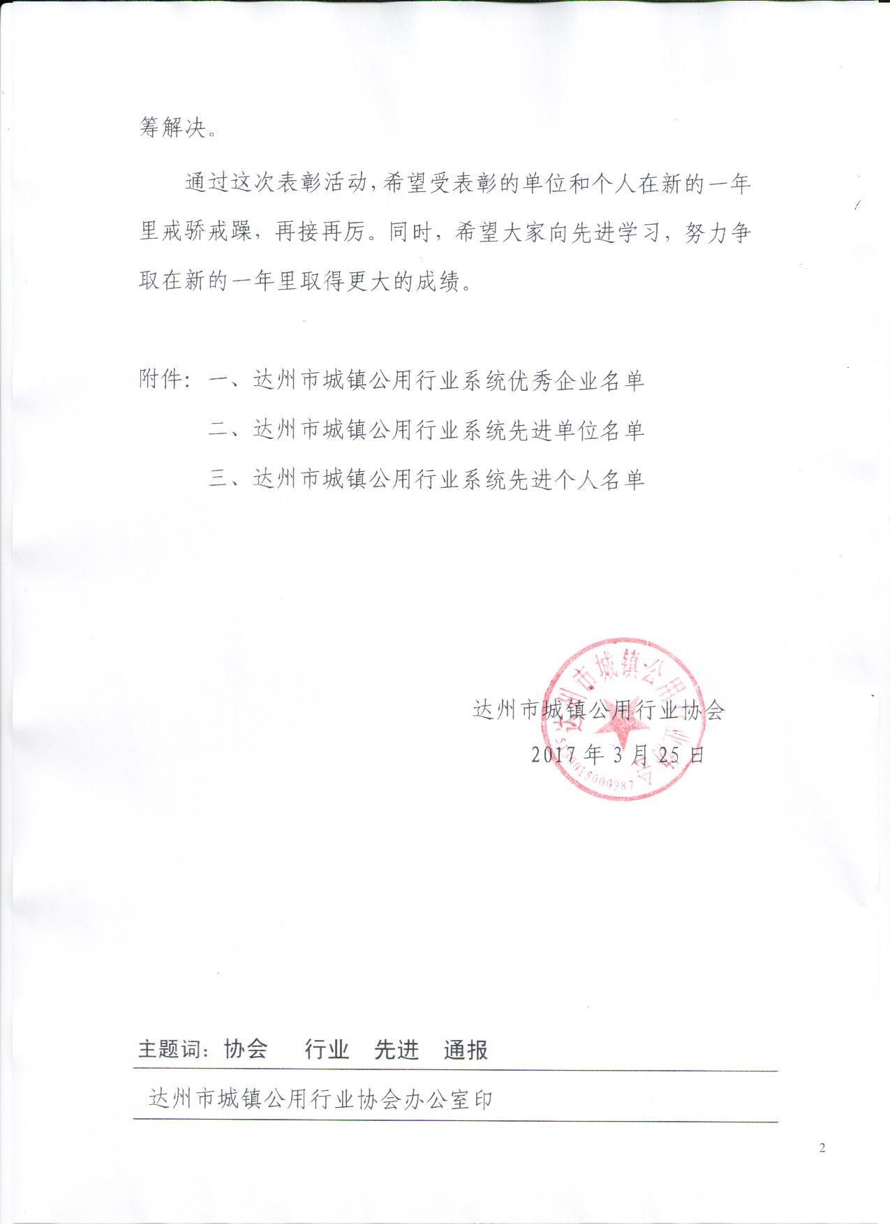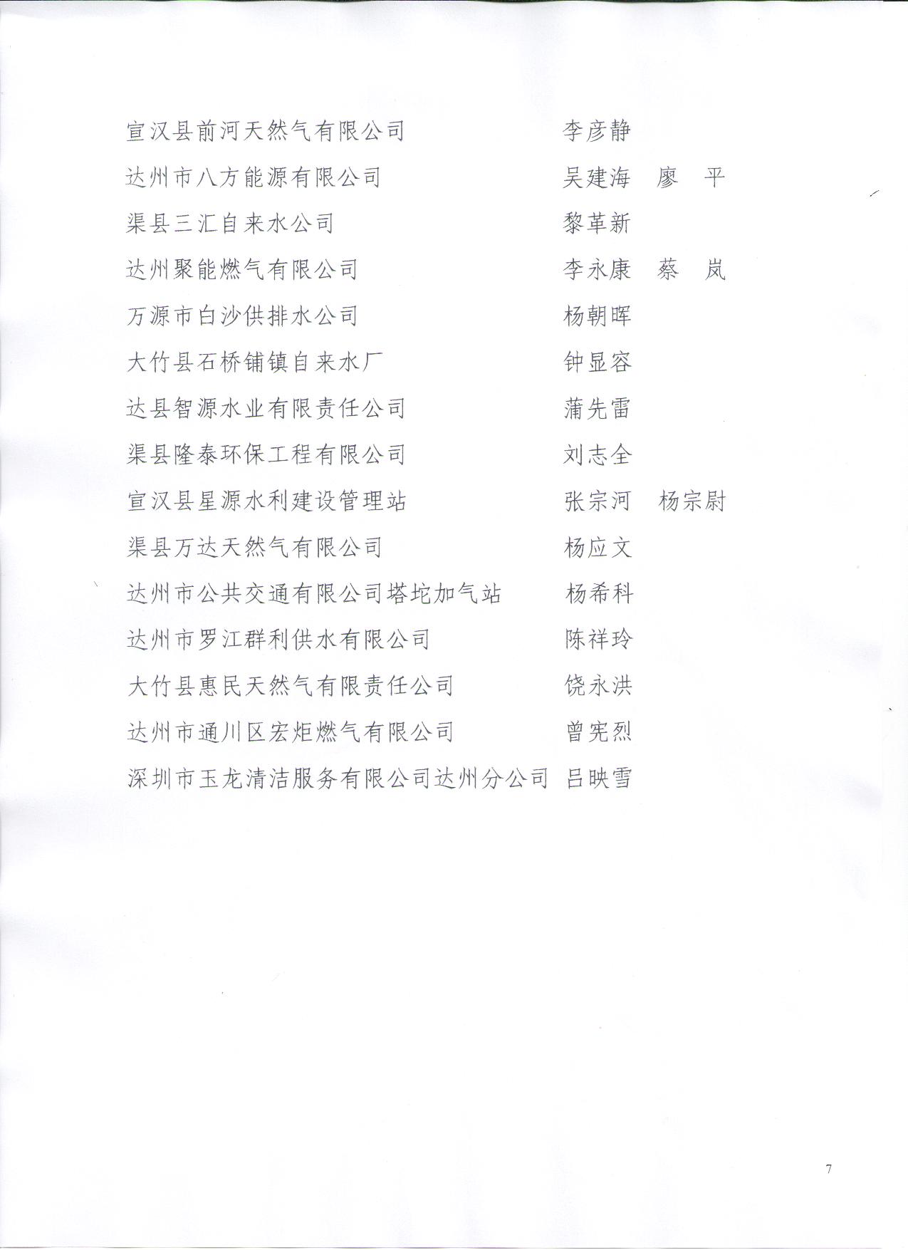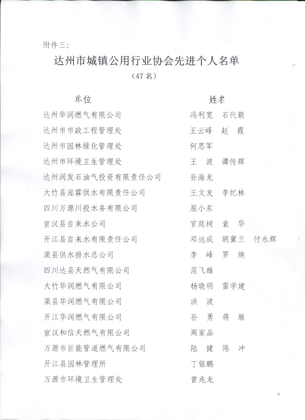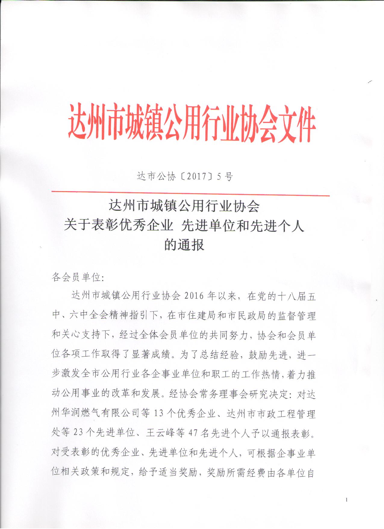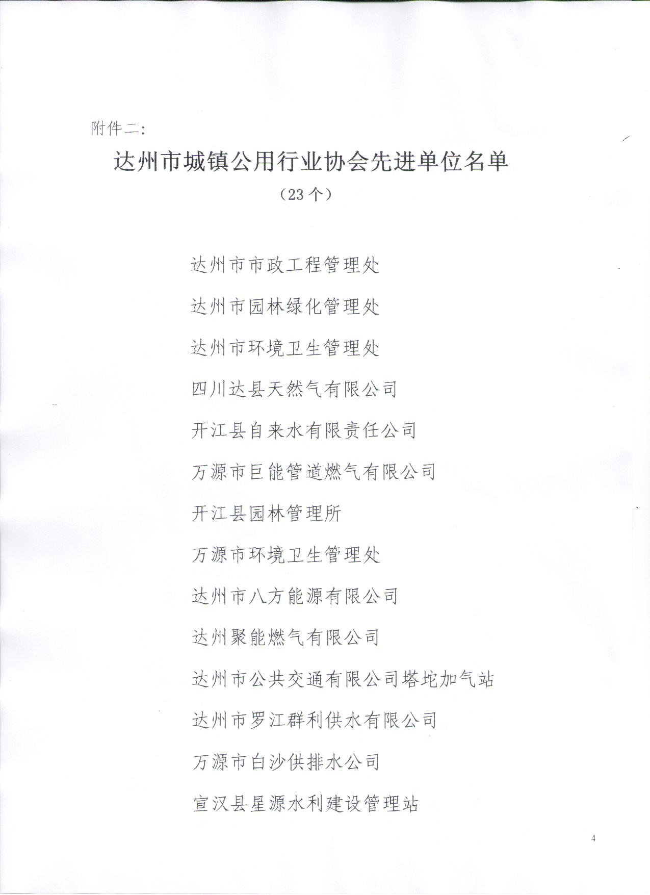 達(dá)州市城鎮(zhèn)公用行業(yè)協(xié)會(huì)關(guān)于表彰優(yōu)秀企業(yè) 先進(jìn)單位和先進(jìn)個(gè)人的通報(bào)