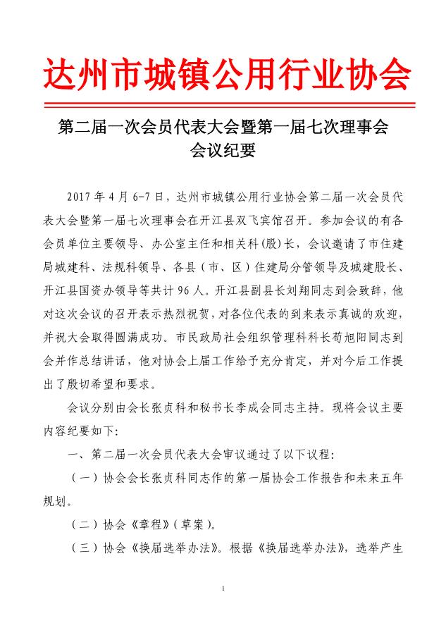 達州市城鎮(zhèn)公用行業(yè)協(xié)會2017年第二期簡報