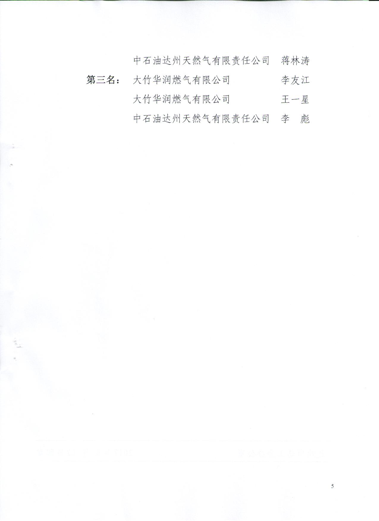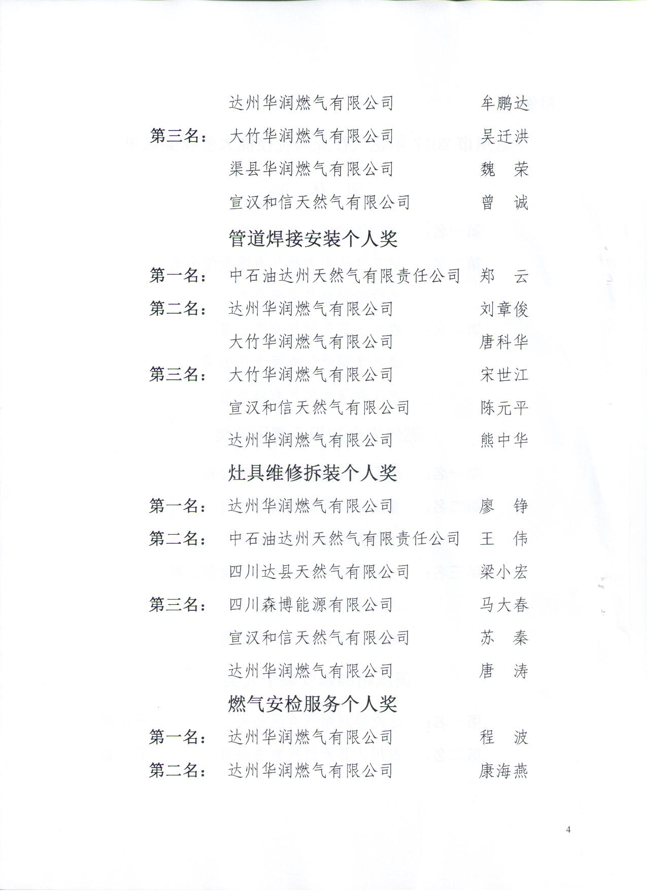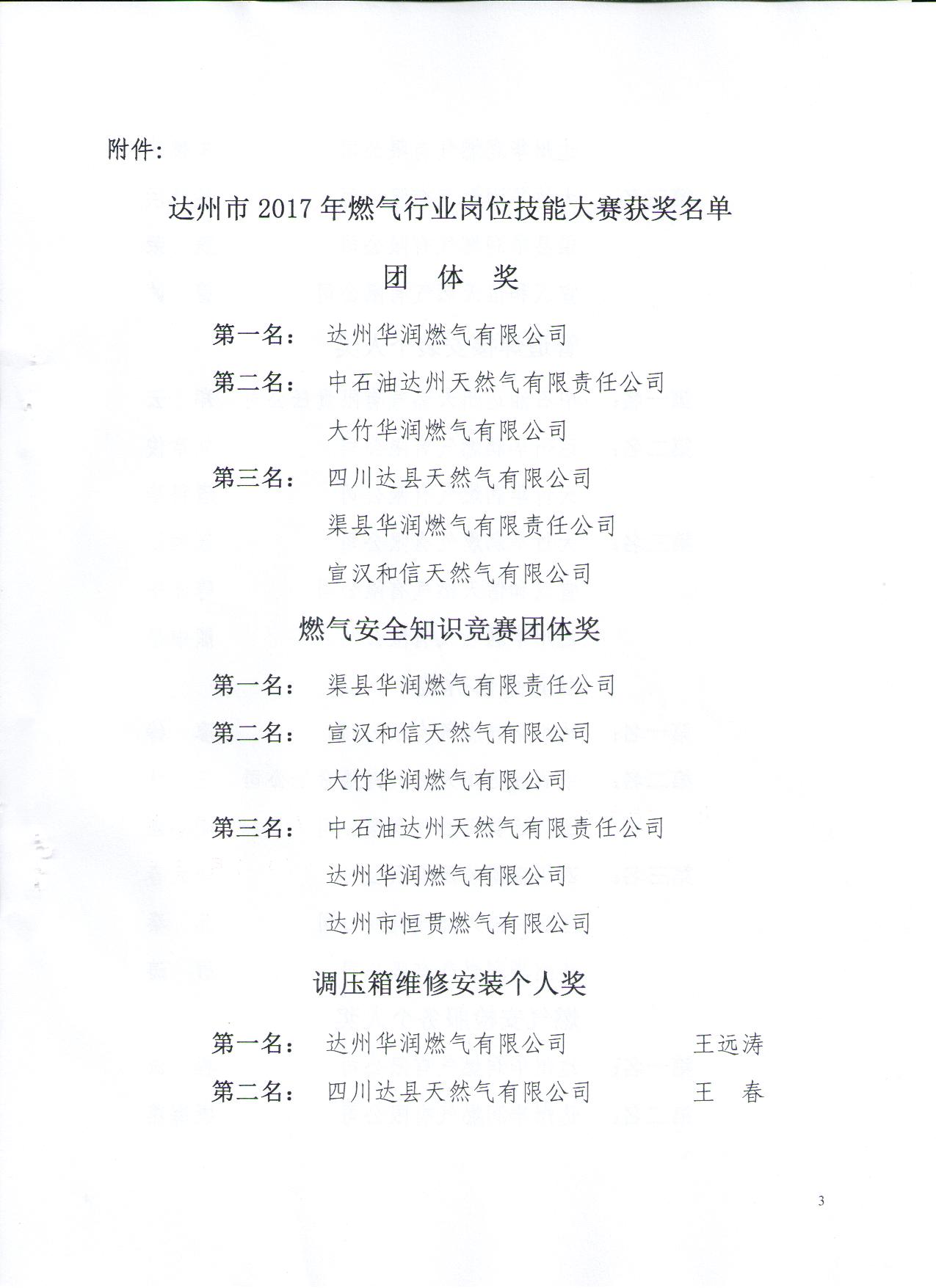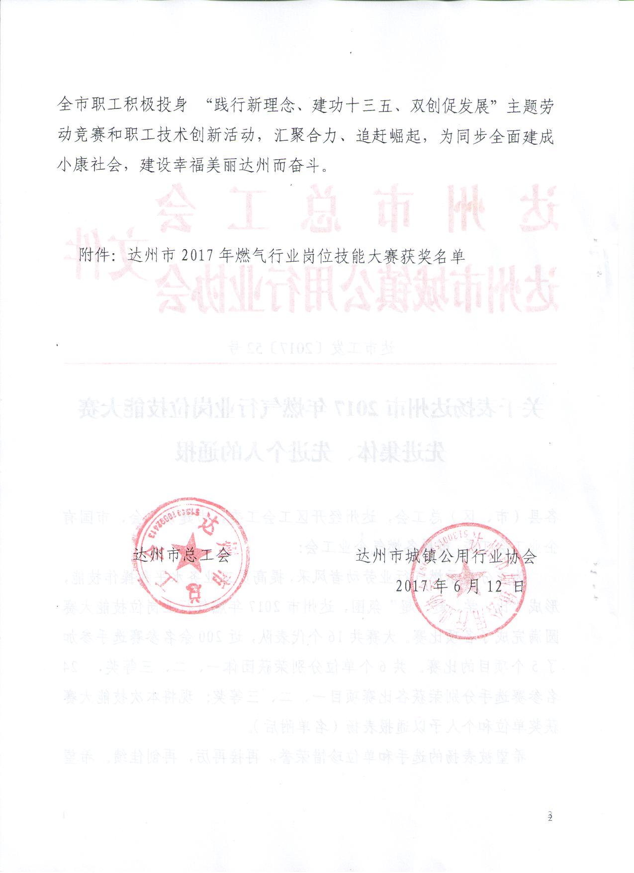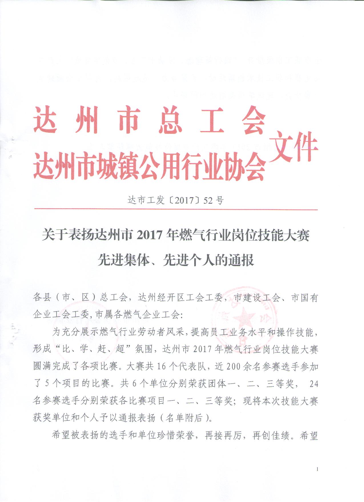 關(guān)于表?yè)P(yáng)2017年達(dá)州市燃?xì)庑袠I(yè)崗位技能大賽先進(jìn)集體、先進(jìn)個(gè)人的通報(bào)