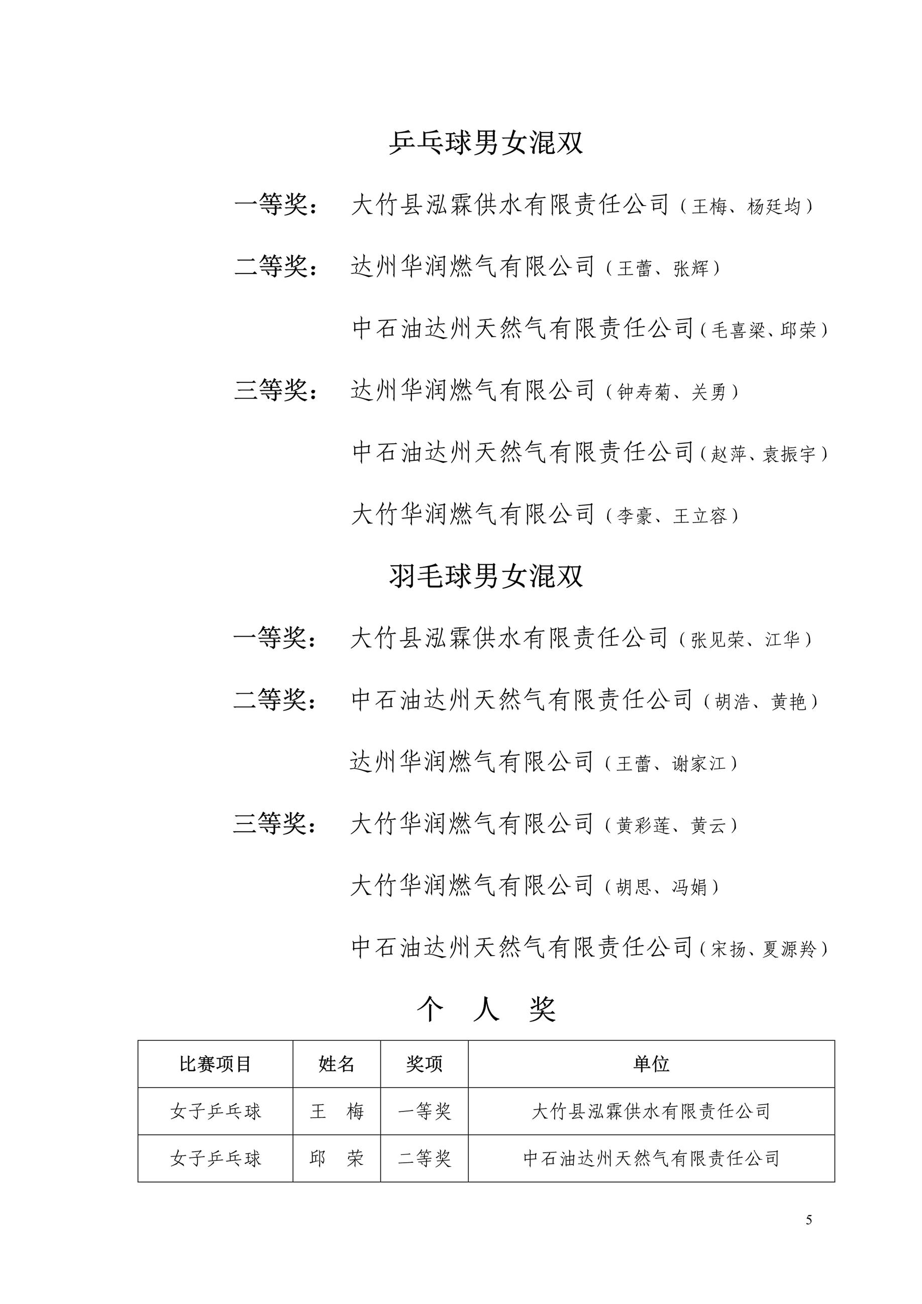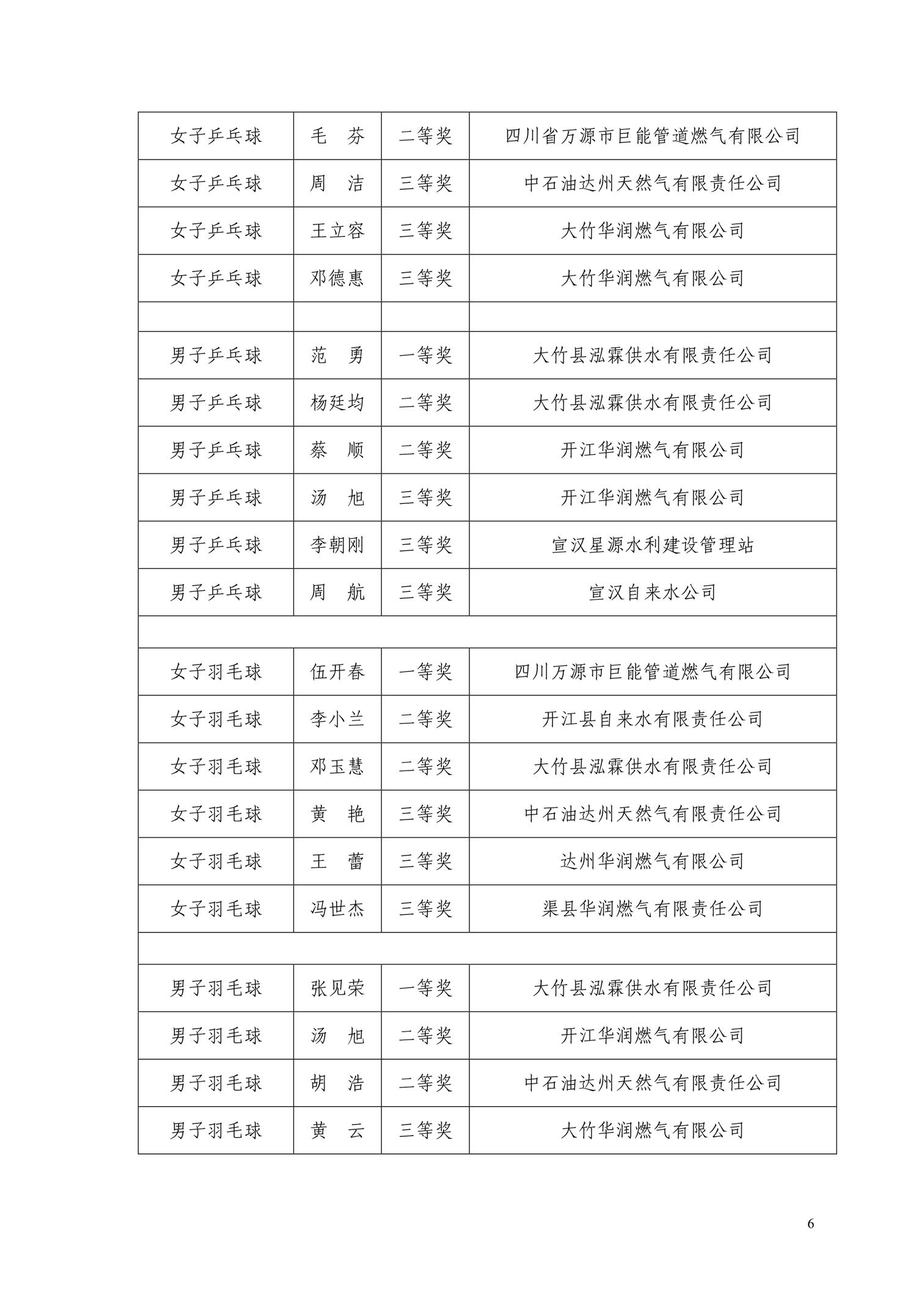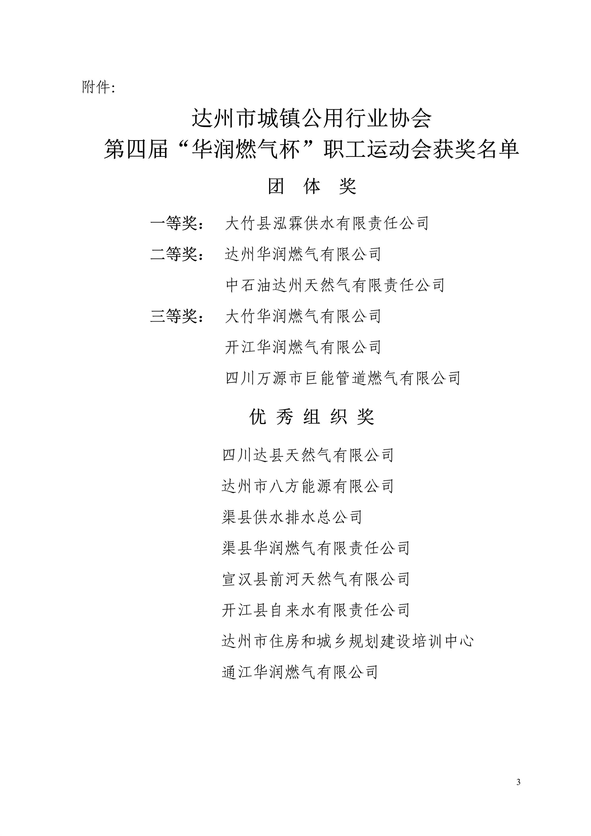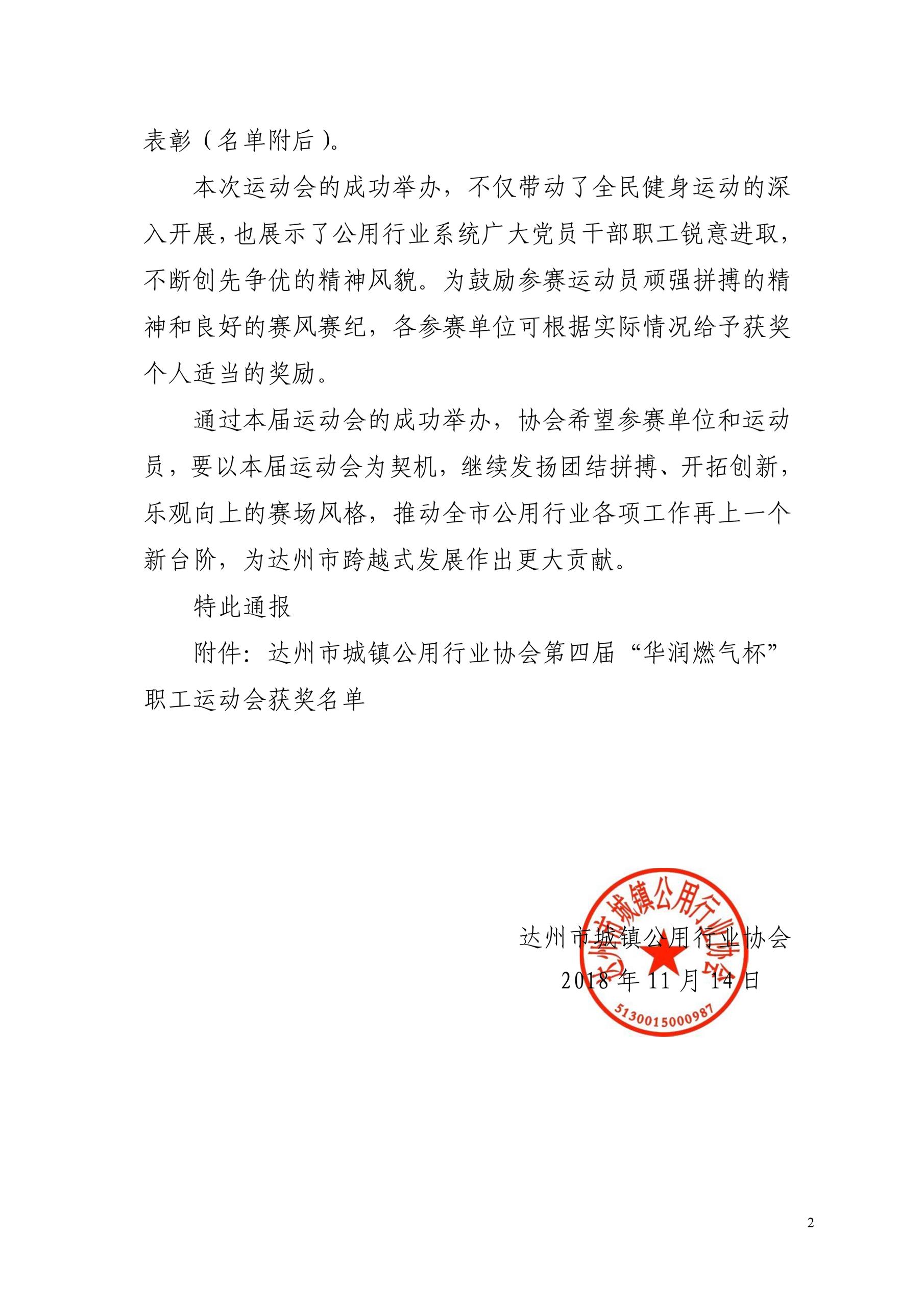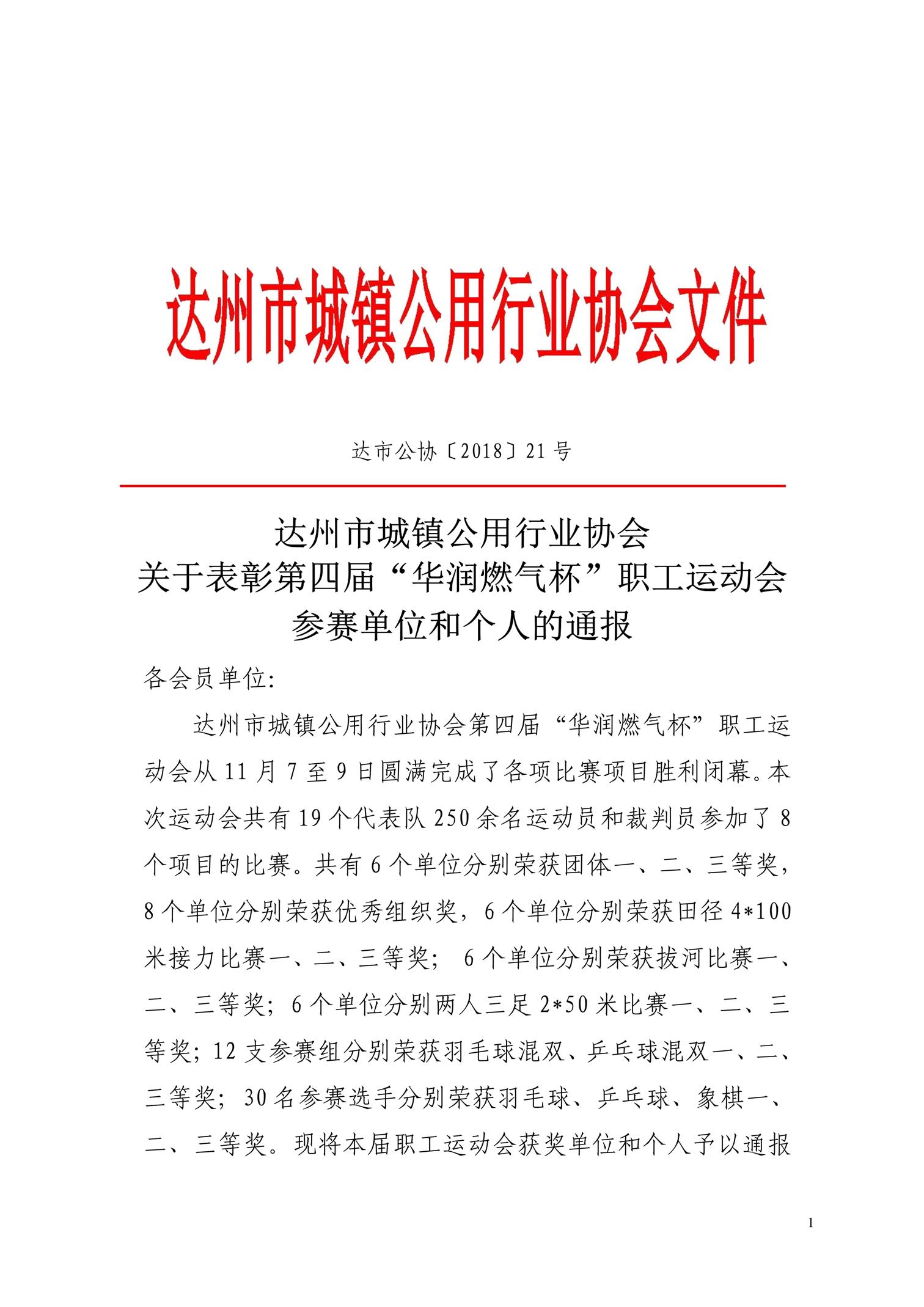 達州市城鎮(zhèn)公用行業(yè)協(xié)會第四屆職工運動會表彰通報