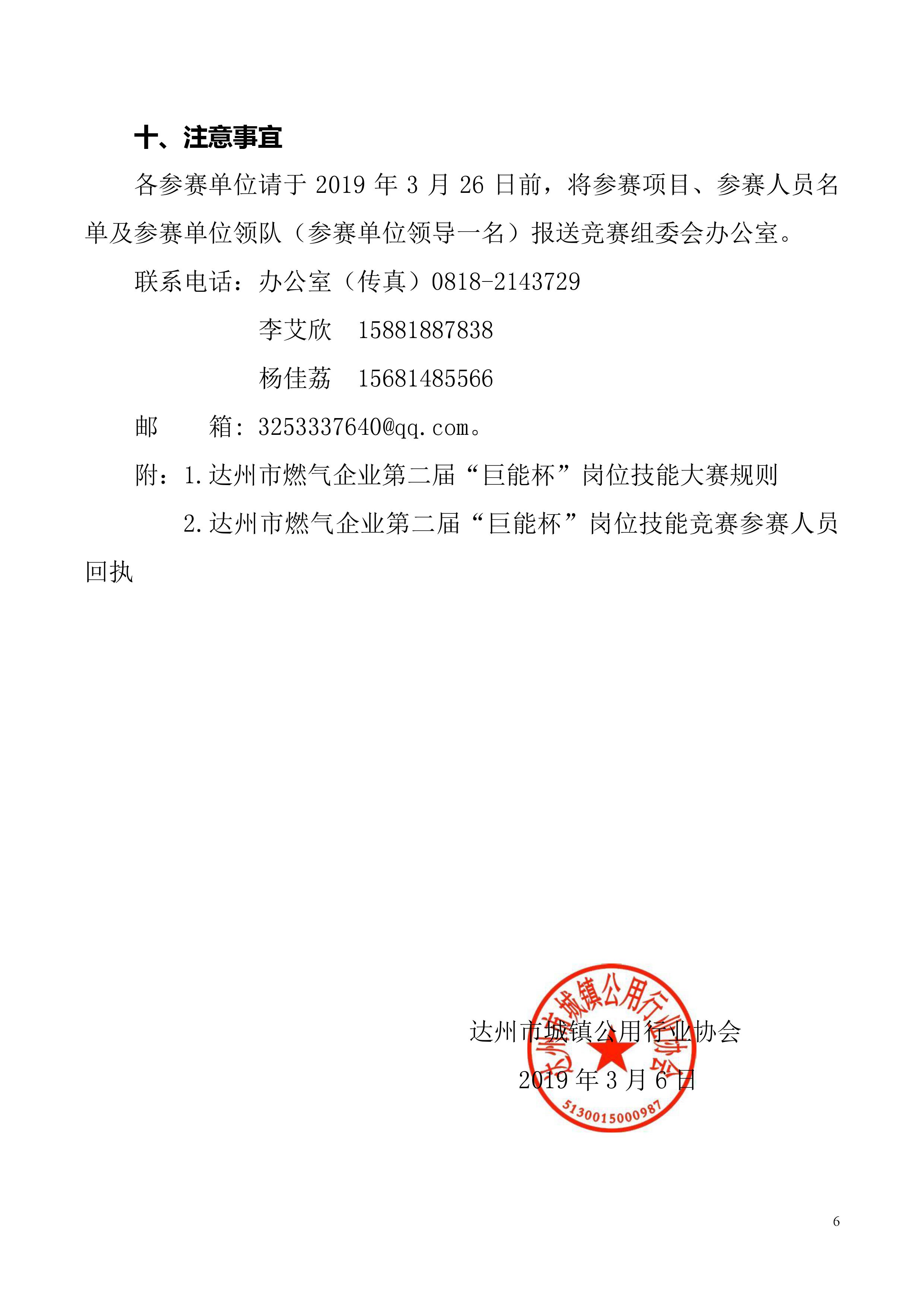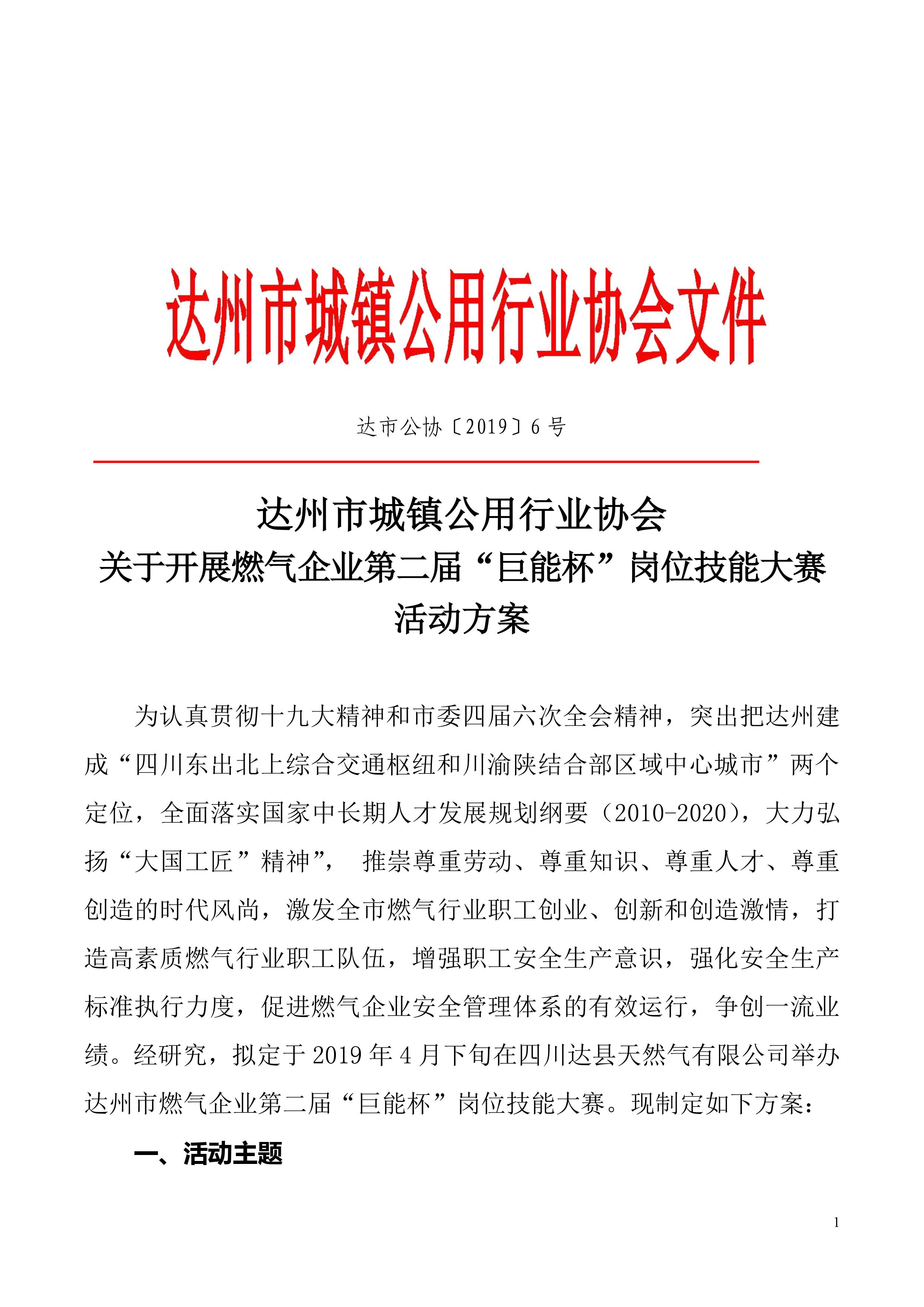達市公協(xié)關(guān)于開展燃氣企業(yè)第二屆“巨能杯”崗位技能大賽