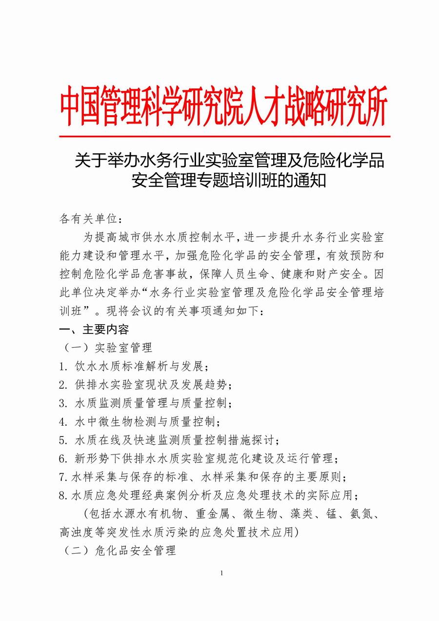 關于舉辦水務行業(yè)實驗室管理及危險化學品安全管理專題培訓班的通知