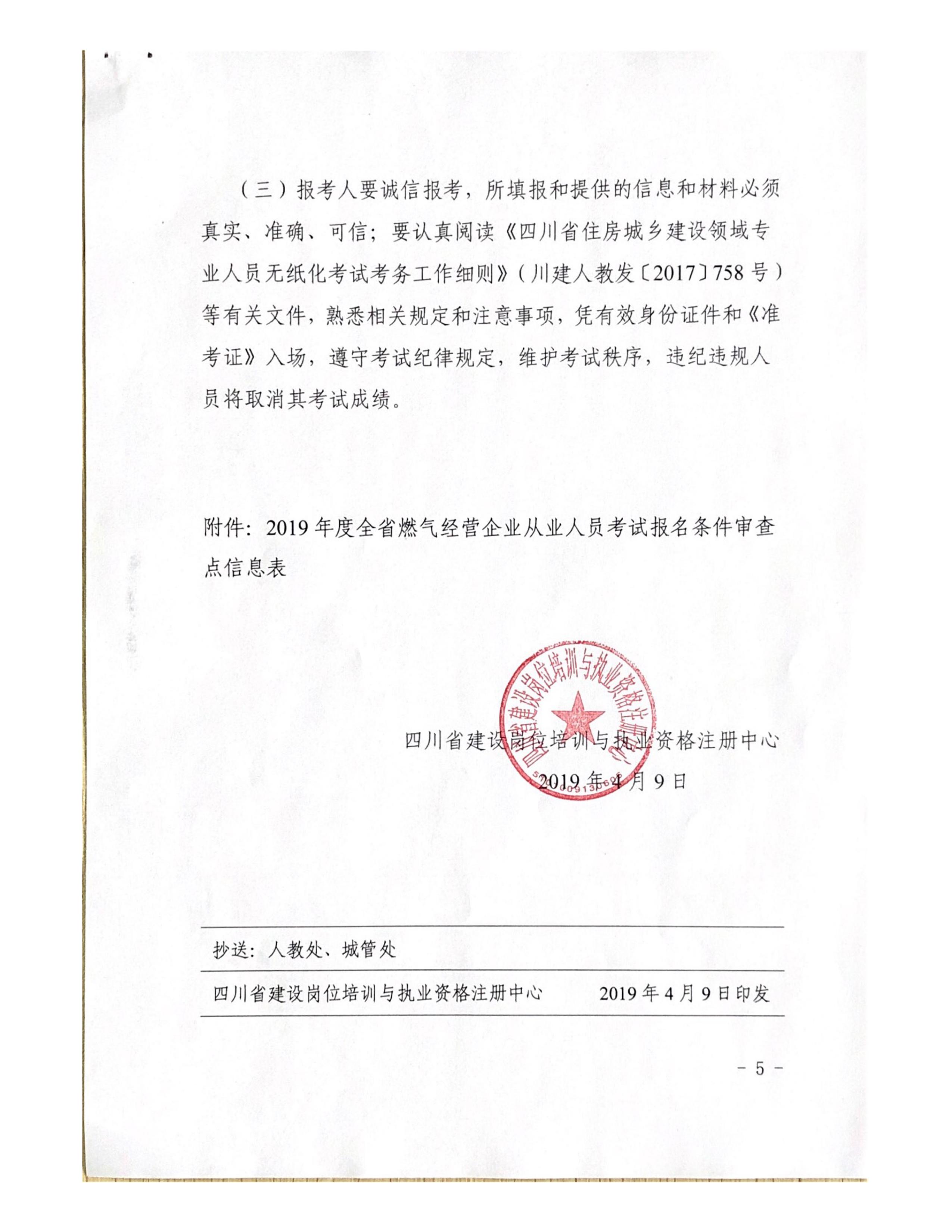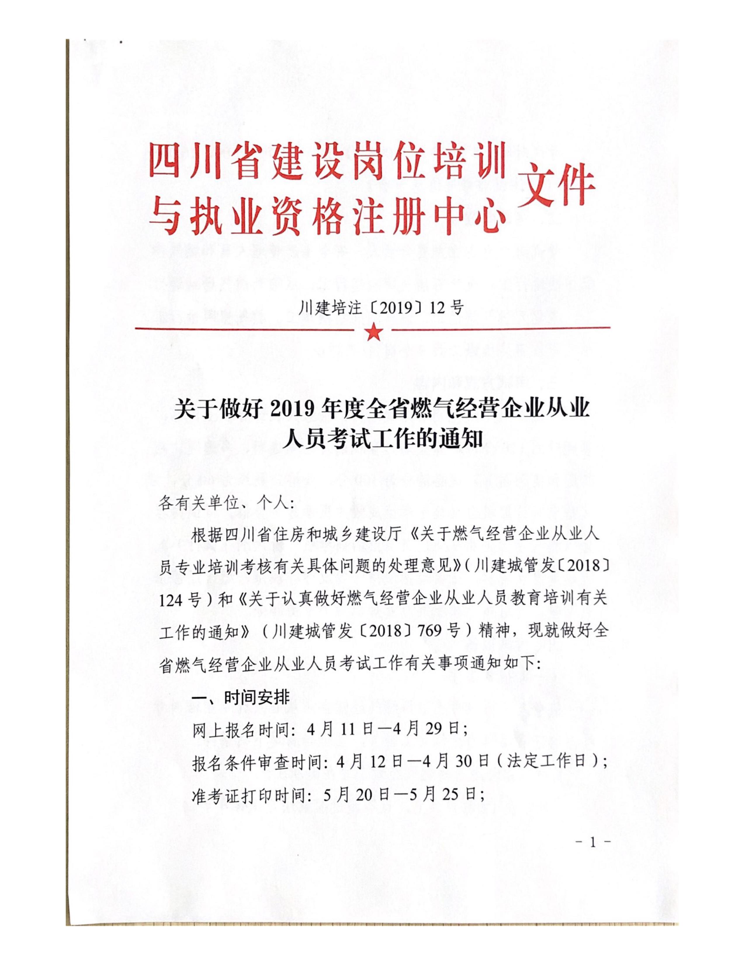 關(guān)于做好2019年度全省燃?xì)饨?jīng)營企業(yè)從業(yè)人員考試工作的通知