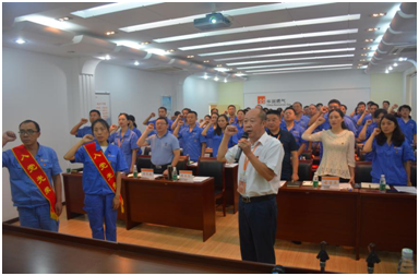隨后,新黨員上臺,全體黨員干部起立,由張尚筠同志領(lǐng)誓重溫入黨誓詞。新黨員代表及獲獎代表分別發(fā)表了感言,他們表示:做一名合格的黨員要弘揚(yáng)艱苦奮斗的精神,以身作則,清正廉潔,同時努力學(xué)習(xí)立足崗位作貢獻(xiàn)。