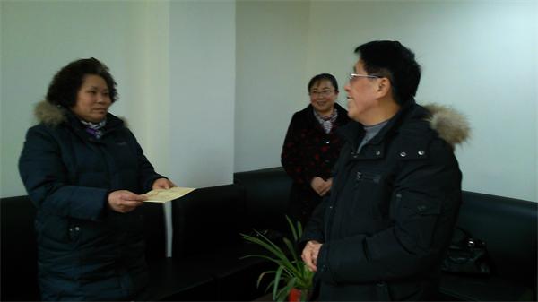 協(xié)會張會長給市政工程管理處困難職工何曉瑜發(fā)放慰問金