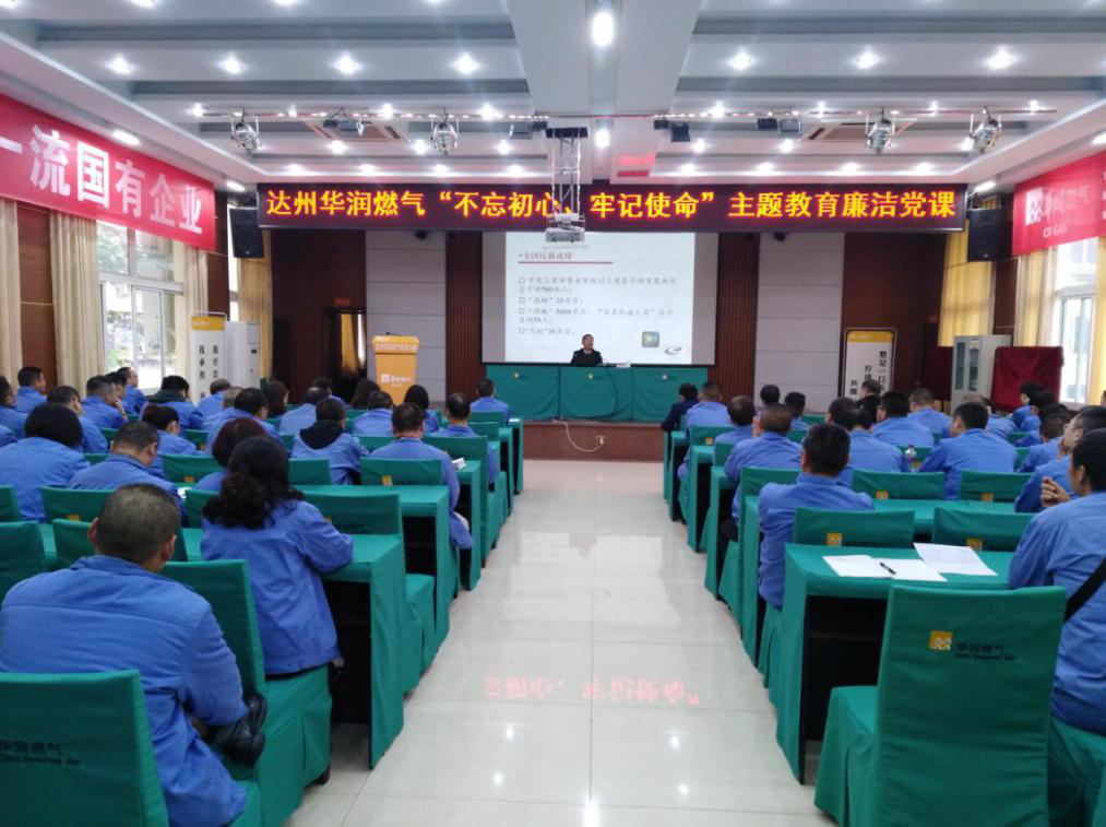 為進(jìn)一步加強(qiáng)公司黨風(fēng)廉潔建設(shè),從源頭上預(yù)防和治理腐敗,筑牢黨員干部拒腐防變的思想道德防線,增強(qiáng)黨員干部廉潔自律意識(shí),10月11日下午,達(dá)州華潤(rùn)燃?xì)馀e辦了“不忘初心、牢記使命”主題教育廉潔專題講座。公司中層以上管理人員、全體黨員及人財(cái)物相關(guān)部門的全體員工110余人聆聽(tīng)了講座。