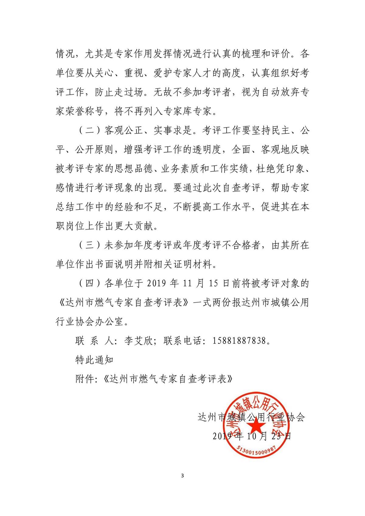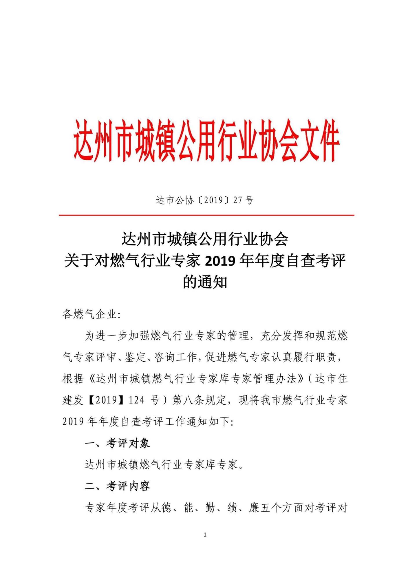 關(guān)于對(duì)燃?xì)庑袠I(yè)專家2019年年度自查考評(píng)的通知