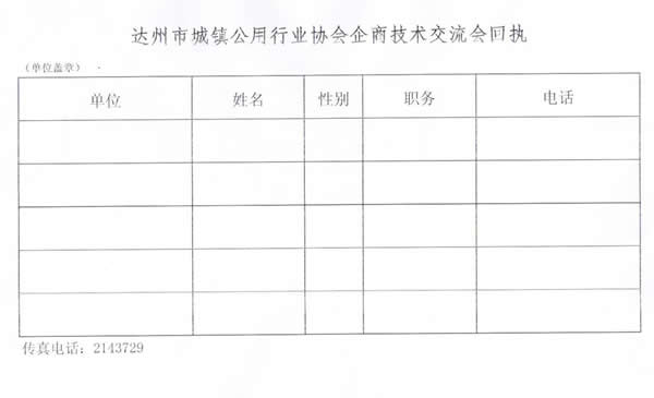 達(dá)州市城鎮(zhèn)公用行業(yè)協(xié)會(huì)關(guān)于調(diào)整組織機(jī)構(gòu)組成人員名單的通知